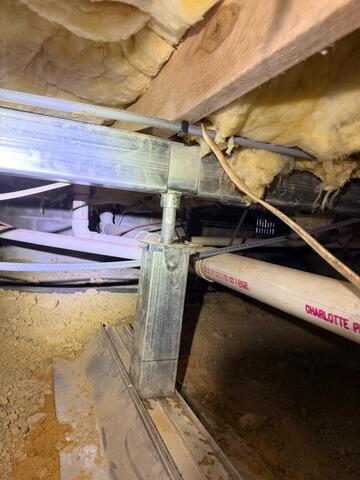 In the crawl space repair project we completed in Millboro, the homeowner was troubled by sagging floors. With our SmartJack® System, we stabilized the crawl space beams and floor joists effectively, addressing foundation issues. Our galvanized steel columns, set on a 12-inch steel base, support and adjust the floor toward its original elevation. Notice in the photo how the SmartJack® installation restores a stable, solid base, reducing floor bounce and maintaining structural integrity.